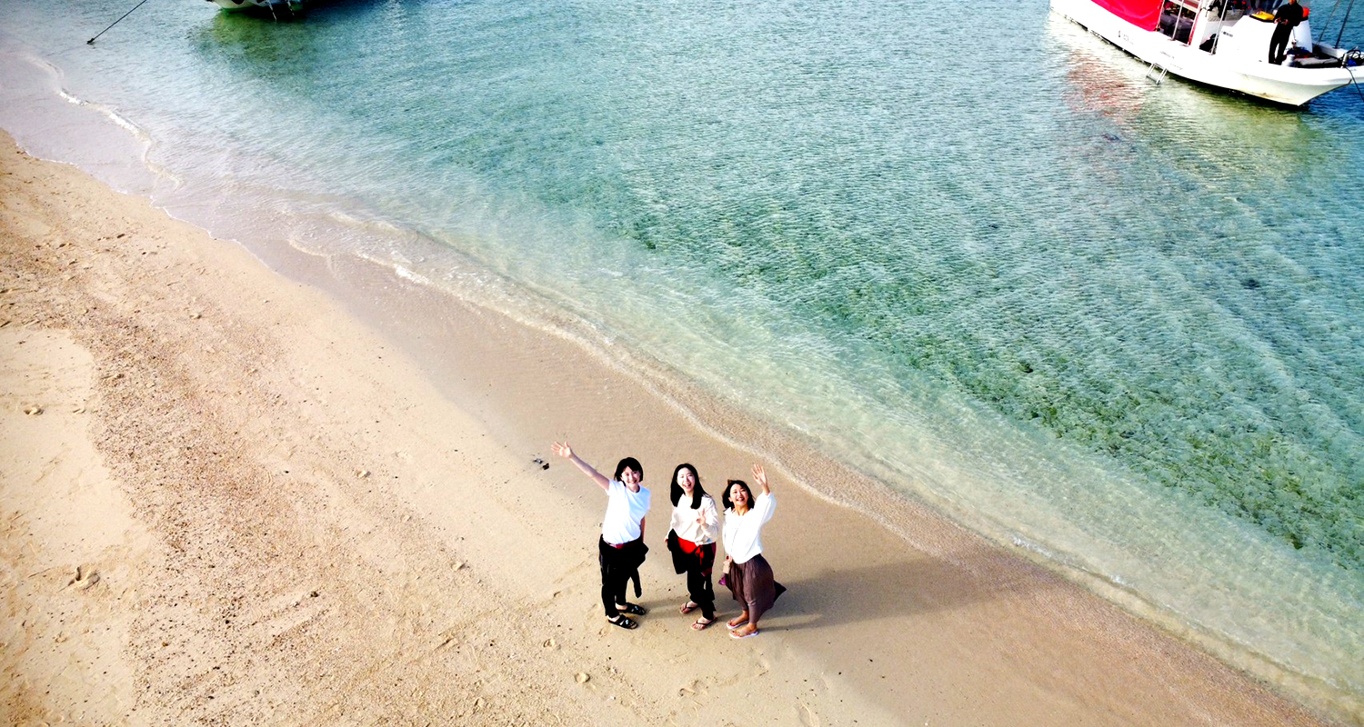 砂浜に寝転がったり、普段は撮らないようなおもしろ写真にチャレンジして下さい。ただシャッターを押すだけで上空から見ると綺麗な三日月型の島で、CMやグラビア撮影、結婚式も行われる。