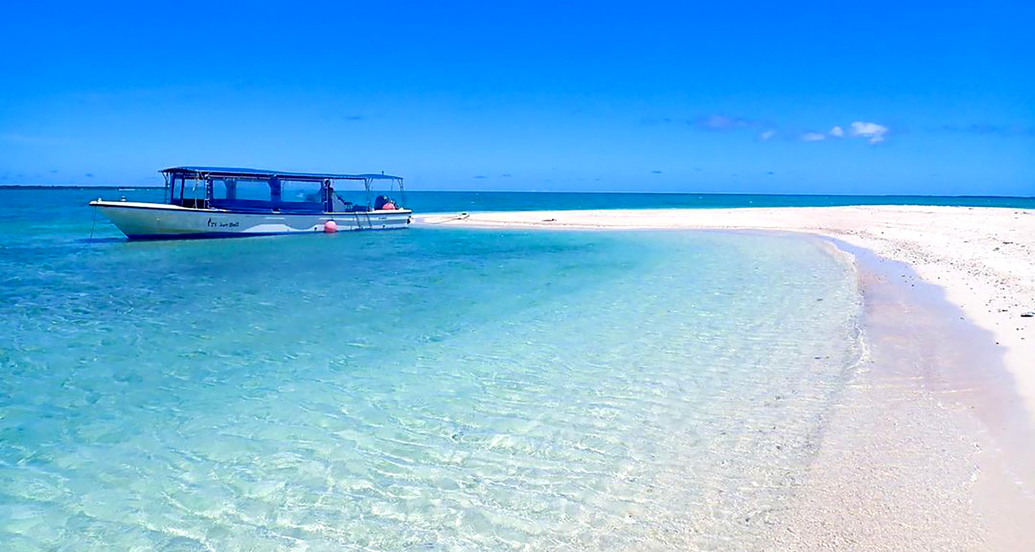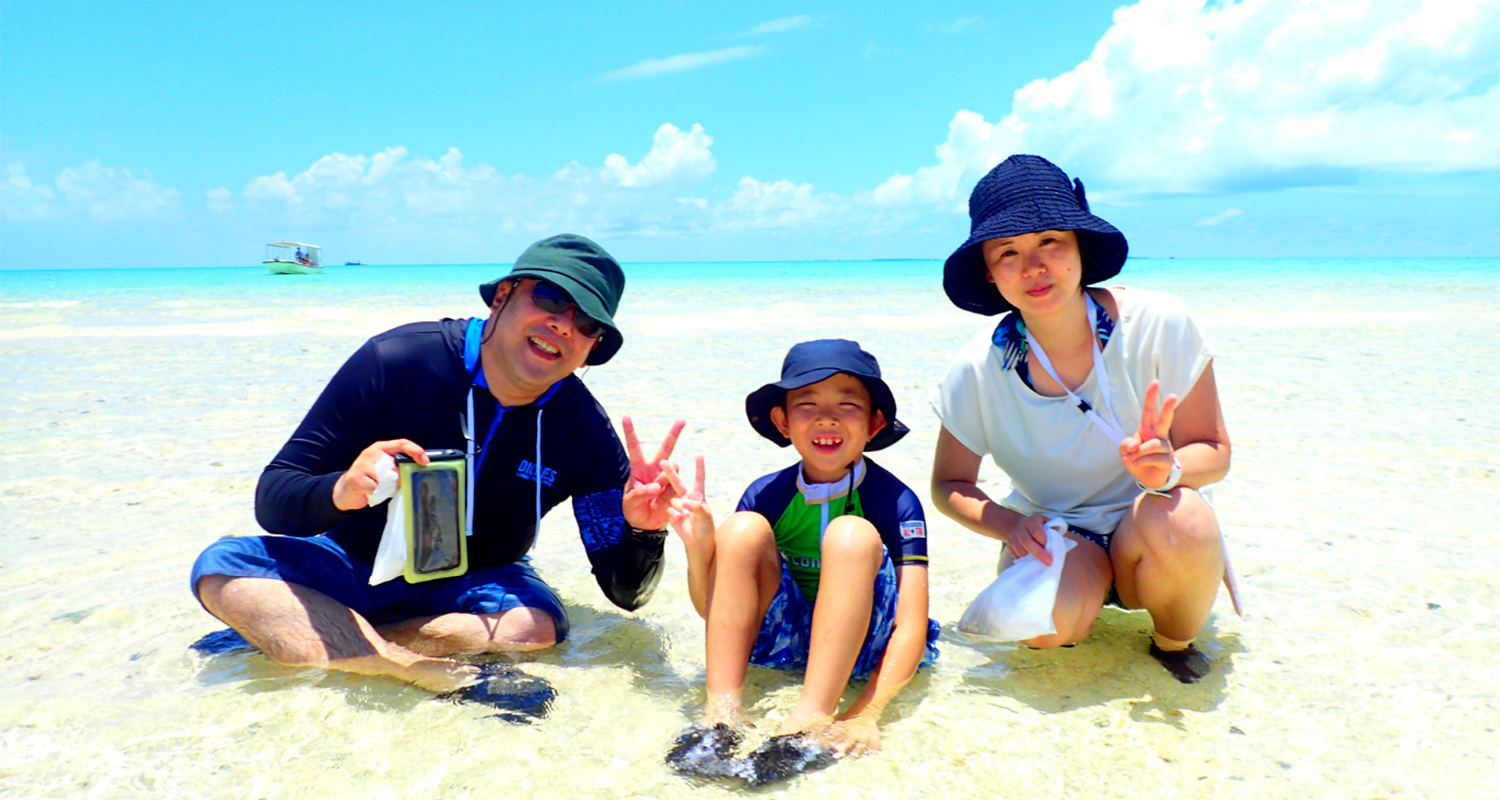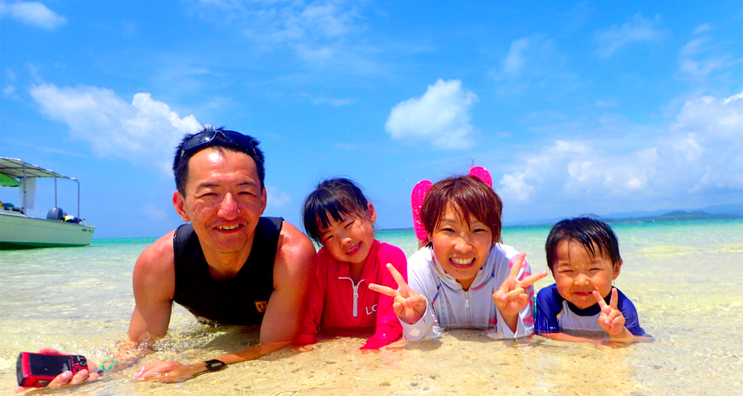 島周辺は浅く、シュノーケリングの講習やお子様の水遊びに最適。