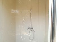 石垣島と小浜島の施設はシャワー(シャンプー、ドライヤーなども完備)、トイレ、休憩所などを完備しているので、宿泊先が連泊でない方、レンタカー、当日フライトの方など女性やお子様にも安心してご利用頂けます(シャワー室はお子様と一緒に入れる様に大きめに作っています)。